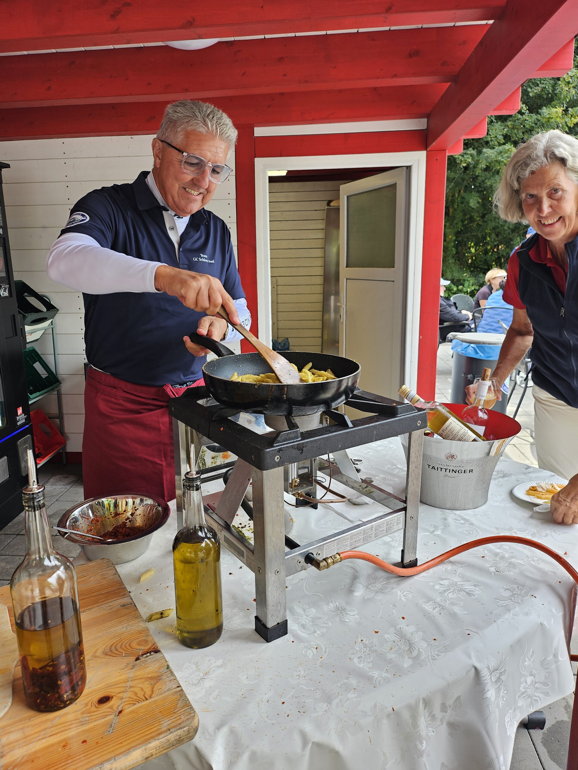 Die Stimmung auf dem Platz war einfach großartig-viele Spielgruppen kamen sogar in kreativen Team Polos! Für das leibliche Wohl war bestens gesorgt: An verschiedenen Stationen gab es erfrischende Getränke, Pulpo, Würstchen und Pasta mit Pesto. Am Abend haben wir gemeinsam auf der Clubhaus-Terrasse gespeist, die Sieger|innen geehrt und den Tag bei Live-Musik und Tanz ausklingen lassen. Wir freuen uns bereits auf die Auel Open 2026!